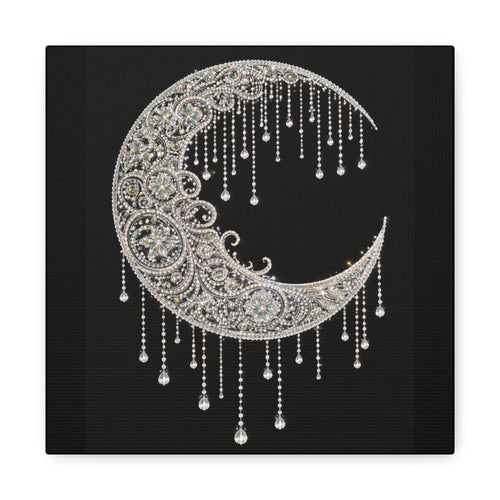 Moonlit Goddess Canvas Wall Art — Boho Crescent Moon Starlight Print -